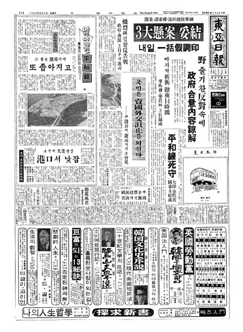 - 尹潽善(윤보선)씨、遊說(유세)마치고會見(회견) 〃국민은 賣國外交沮止(매국외교저지)를 외친다〃
