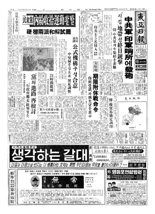 - 中共軍(중공군)、印軍哨所(인군초소)에發砲(발포)