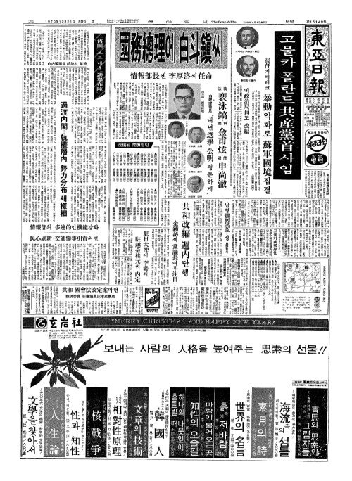 - 國務總理(국무총리)에 白斗鎭(백두진)씨