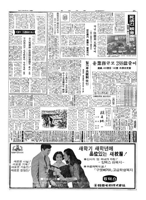 - 日(일)섬유産業聯(산업련)요구 對美輸出(대미수출)자율規制(규제)선언 半年(반년)후韓國(한국)도適用(적용)토록