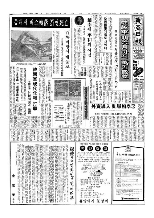 - 駐越軍(주월군) 明六月(명륙월)까지 萬(만)명撤收(철수)