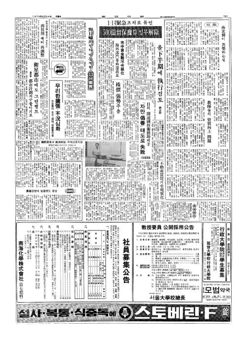 - 1·14緊急(긴급)조치로 묶인 500億留保豫算(억류보예산) 일부解除(해제)