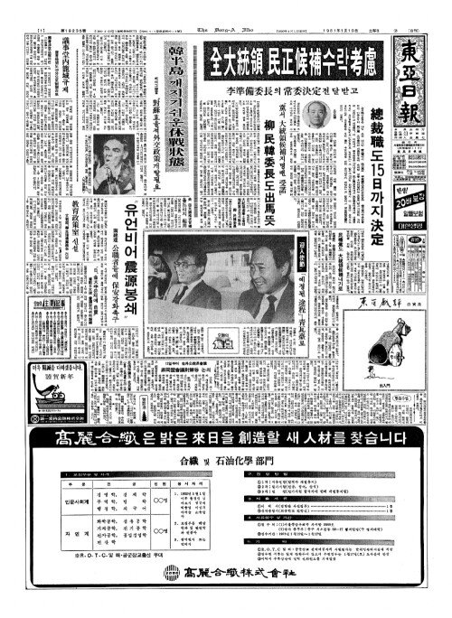 - 大統領選擧(대통령선거)소홀땐 地區責(지구책)공천서除外(제외) 柳(류) 民韓委長(민한위장)