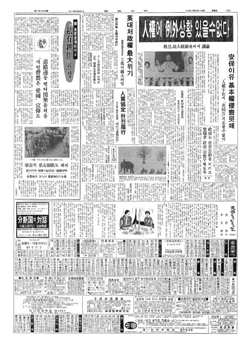 - 教皇(교황),比大統領(비대통령)관저서 講論(강론) 人權(인권)에「例外(예외)상황」있을수없다