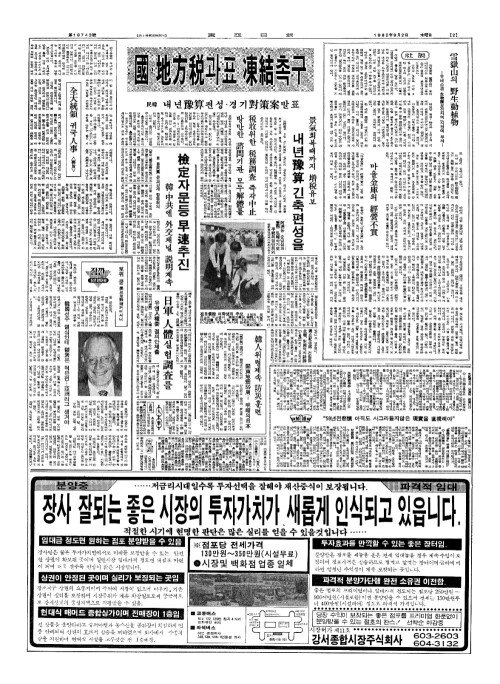 - 民韓(민한) 내년豫算(예산)편성·경기對策案(대책안)발표 國(국)·地方稅(지방세)과표 凍結(동결)촉구