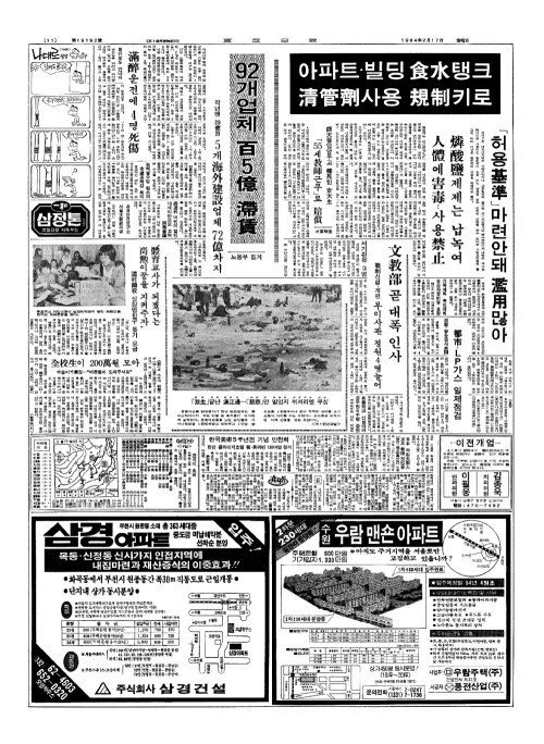 - 아파트·빌딩 食水(식수)탱크 清管劑(청관제)사용 規制(규제)키로