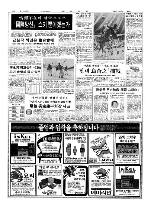 - 情報不在(정보부재)의 한국스포츠 「國際(국제)망신」스키 뿐이겠는가
