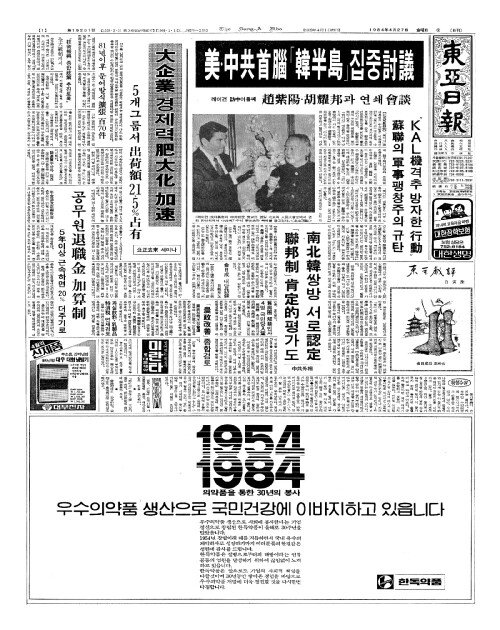 - 美(미)·中共首腦(중공수뇌)「韓半島(한반도)」집중討議(토의)