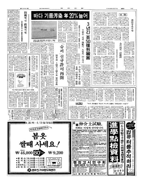 - 바다 기름汚染(오염) 年(년)20%늘어