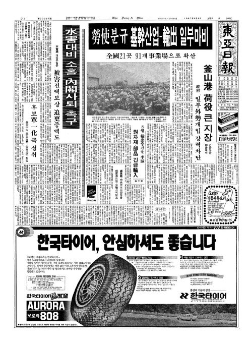 - 水害(수해)보상 요구 8百(백)여명 농성 대학생·水災民(수재민)