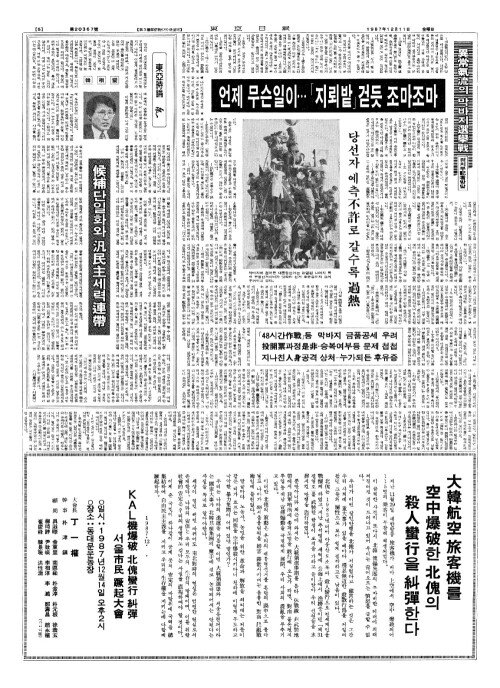 - 汎國民(범국민) 단일후보에 金大中(김대중)씨추대 성명 天主教司祭(천주교사제)2百(백)2명