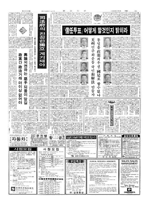 - 大法院長(대법원장)동의표결不參(부삼) 民正(민정) 두議員(의원) 징계키로