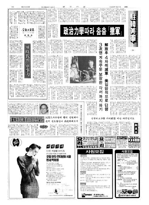- 駐韓美軍(주한미군)빼 딴곳에 배치하면 經費(경비)더들어 한국내 反美(반미)감정 내리막길…美(미)지지 70%