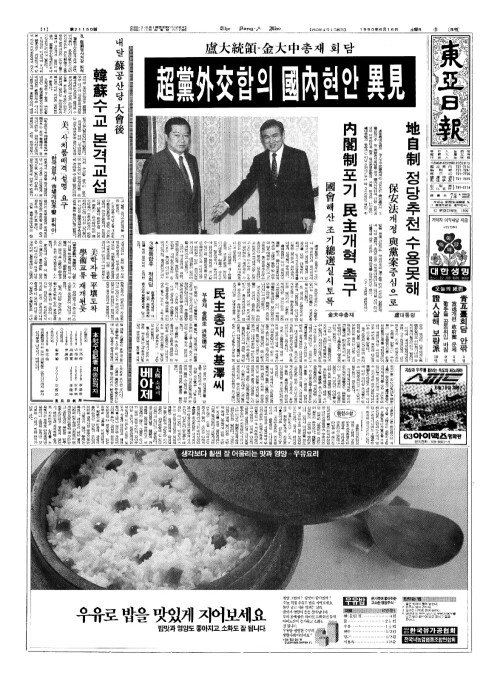 - 民自(민자) 朴(박)위원"金(김)총재 大統領制(대통령제) 미련못버리면 얘기 어려워질것"