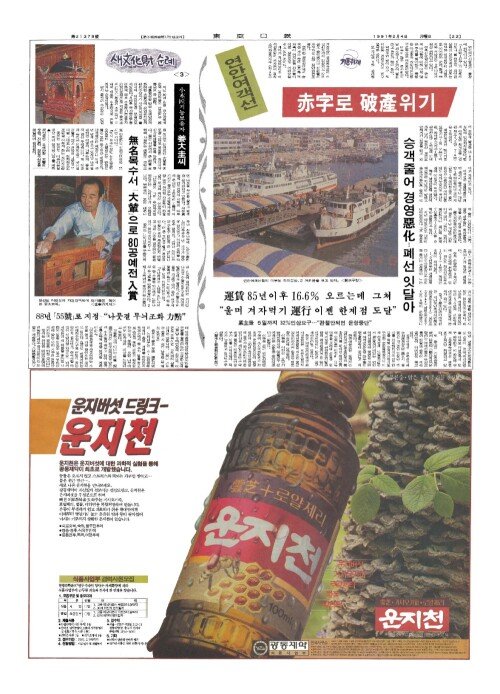 연안여객선 赤字(적자)로 破產(파산)위기