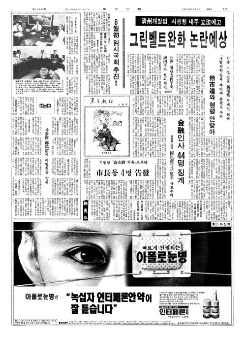 - 「濟州(제주)개발법」시행령 내주 立法(립법)예고 그린벨트완화 논란예상