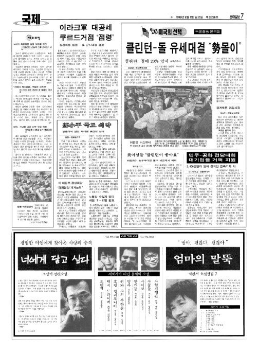 - '96 미국의 선택 득표활동 본격화 클린턴-돌 유세대결"勢(세)몰이"