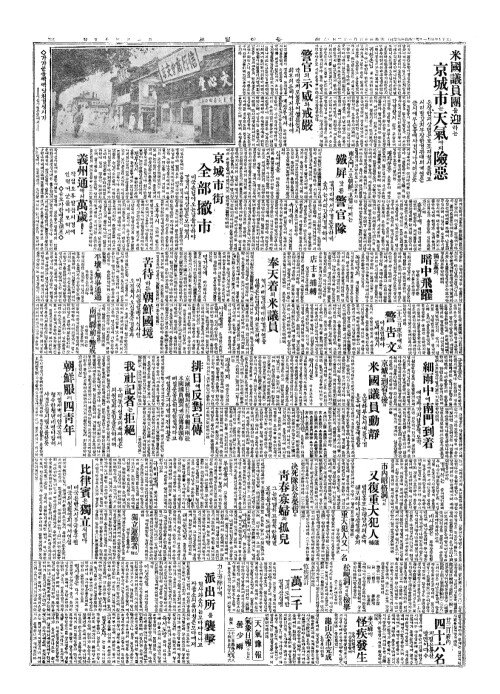 - 米國議員團(미국의원단)을迎(영)하는 京城市(경성시)는天氣(천기)까지險惡(험악)