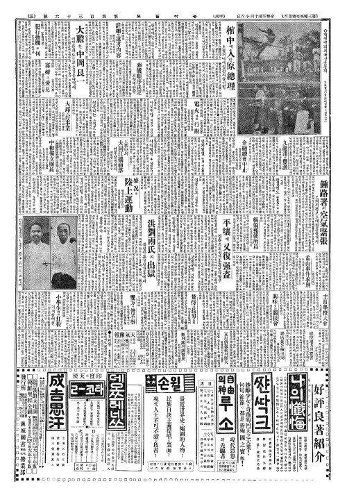 - 政會總裁後任(정회총재후임) 野田(야전)、床次兩氏間乎(상차량씨간호)