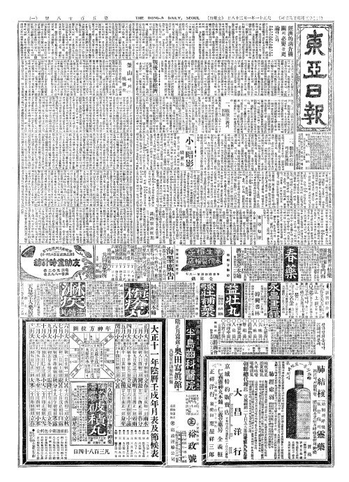 - 샹타는일 應募(응모)는必(필)히葉書(엽서)로 「東亞日報編輯局(동아일보편집국)」에 平和(평화)의舞士(무사) 사자의한자웅