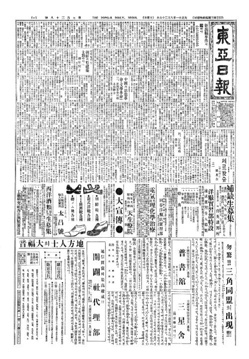 - 南川(남천)에救護班(구호반) 병이만히나서 총독부의의사파견
