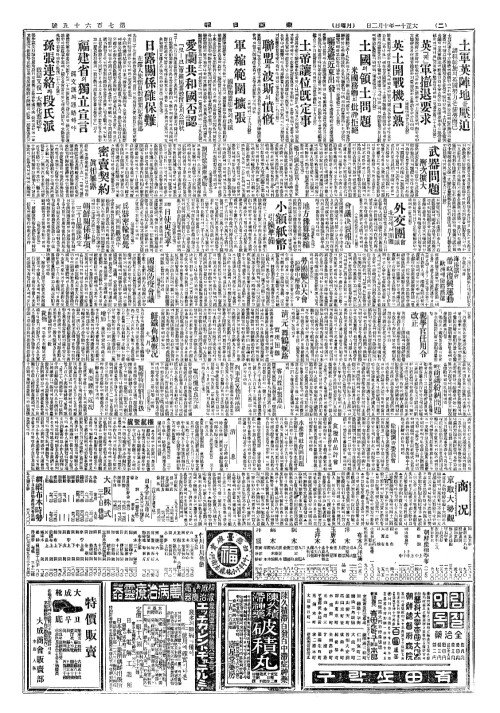 - 土軍英陣地(토군영진지)를壓迫(압박) 講和斡旋(강화알선)의英國努力(영국노력)은徒勞而已(도노이이)