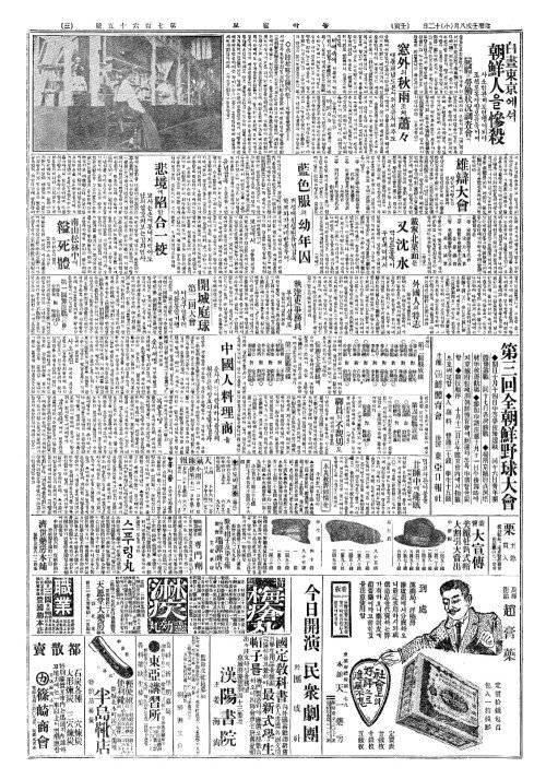 - 白晝東京(백주동경)에셔 朝鮮人(조선인)을慘殺(참살)