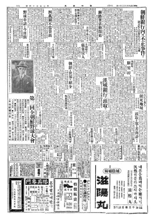 - 朝鮮銀行內(조선은행내)에不正事件(부정사건)? 副支配人宗(부지배인종)?氏以下八人免職(씨이하팔인면직) 부지배인과행원칠팔인이공모하고 수형과소졀수를정당치못하게사용