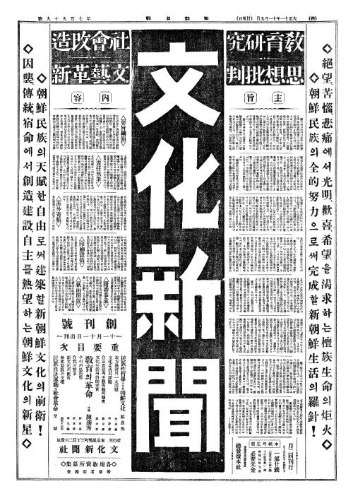 - 『朝鮮之光(조선지광)』創刊(창간) 십일월일々에