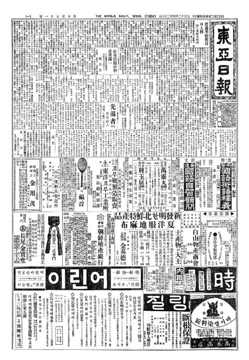 - 平壤(평양)에棄兒頻(기아빈)々 게집아해두명발견
