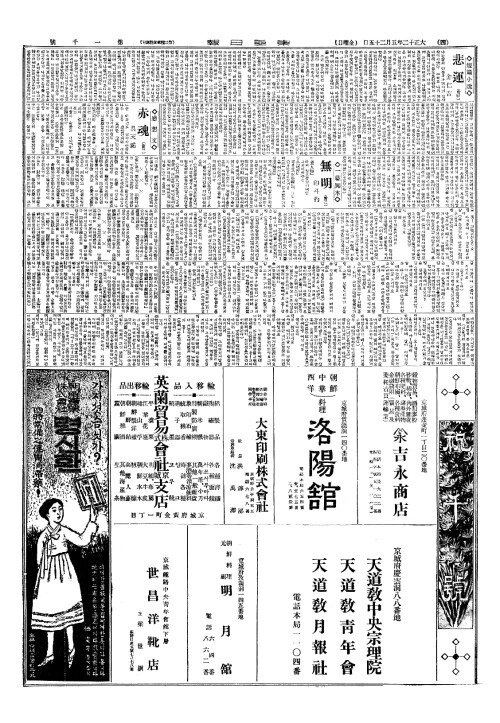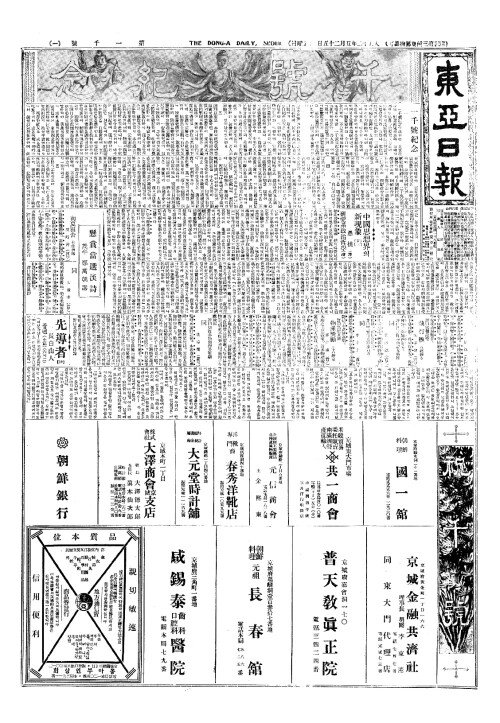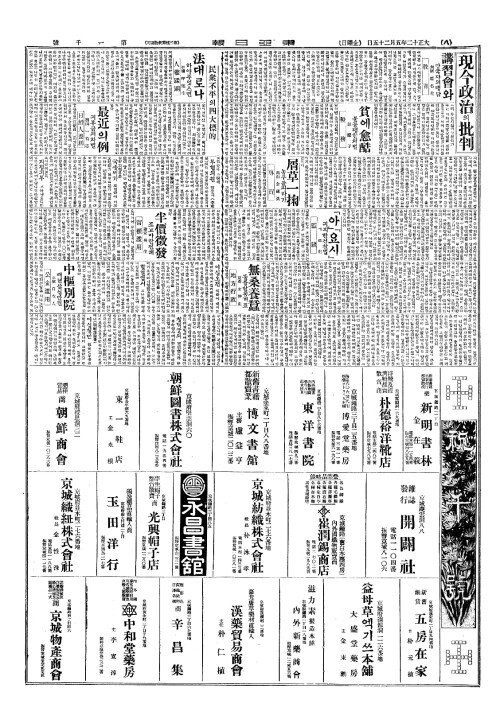 - 今日本紙十二面(금일본지십이면)
