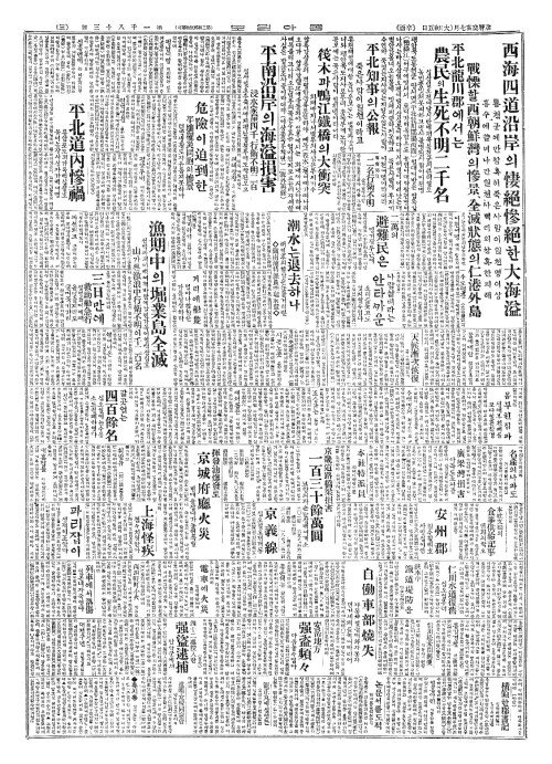 - 西海四道沿岸(서해사도연안)의悽絕慘絕(처절참절)한大海溢(대해일)