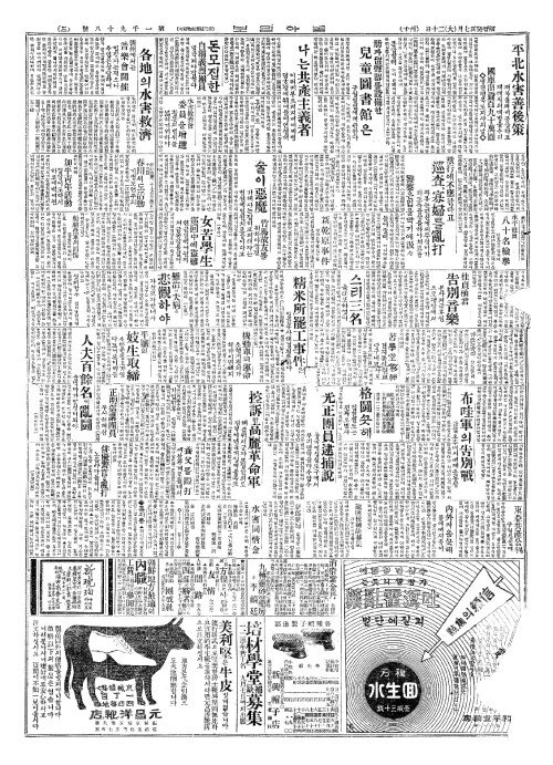 - 水災相助會(수재상조회) 平壤(평양)에서發起(발기)