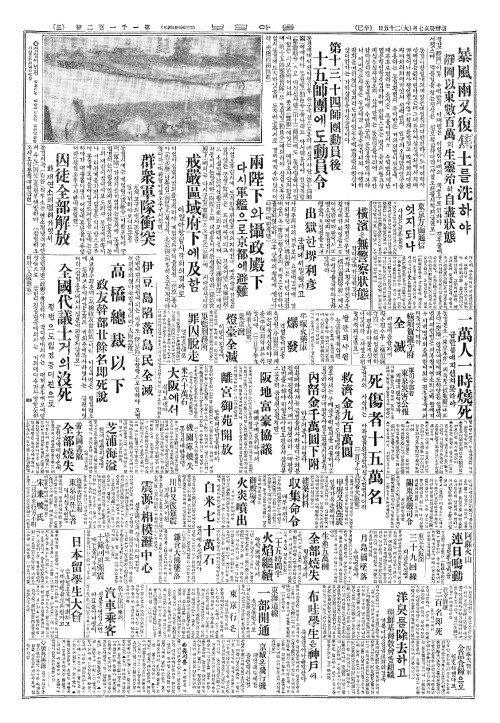 - 未曾有(미증유)의震害(진해)와 朝鮮財界(조선재계)의影響(영향)