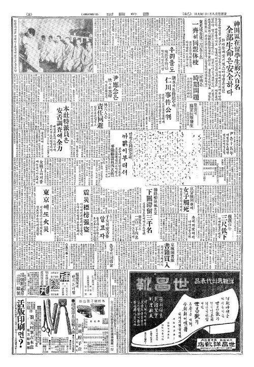 - 神田區在留學生約六百名(신전구재유학생약륙백명) 全部生命(전부생명)은安全(안전)하다