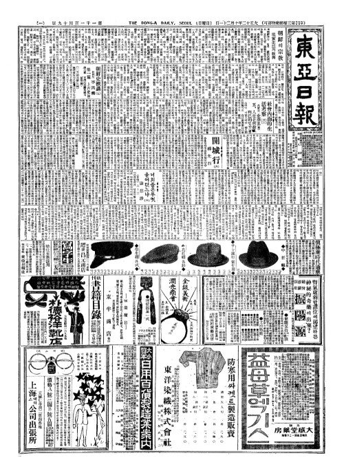 - 今日本紙六面(금일본지륙면)