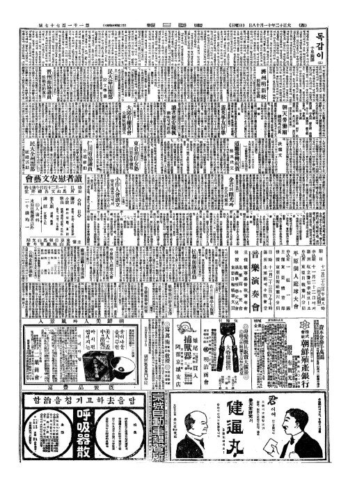 - 今日本紙六面(금일본지륙면)