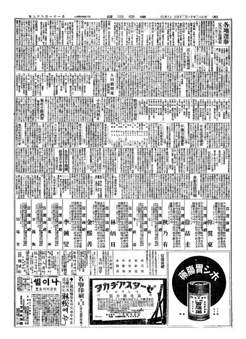- 各地選擧(각지선거) 宣川各面選擧(선천각면선거) 八面八十二人(팔면팔십이인)