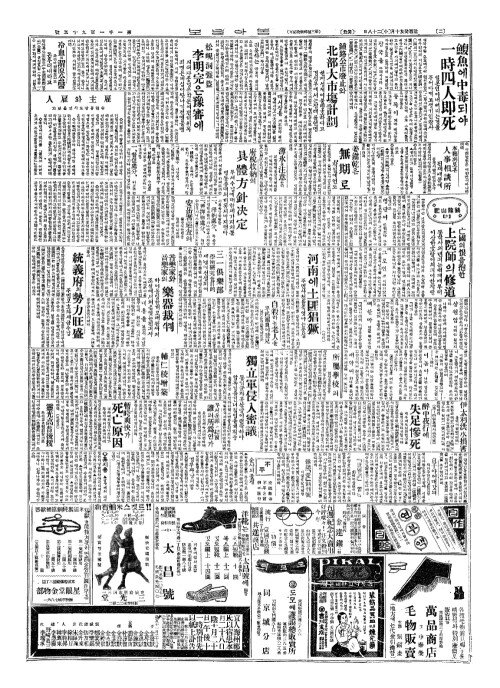 - 鰒魚(복어)에中毒(중독)되야 一時四人即死(일시사인즉사)