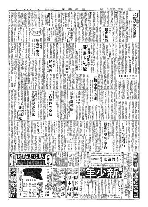 - 山林貸付問題(산임대부문제)로 郡屬(군속)을免職(면직)