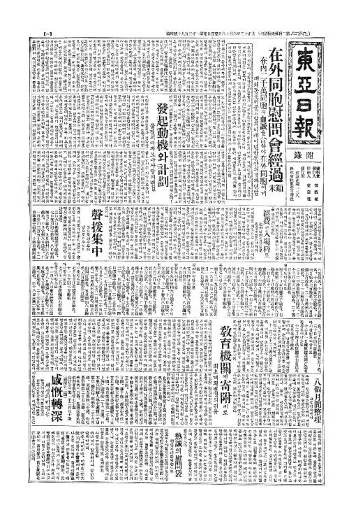 - 在外同胞慰問會經過顚末(재외동포위문회경과전말)은今日附錄(금일부록)으로發表(발표)함
