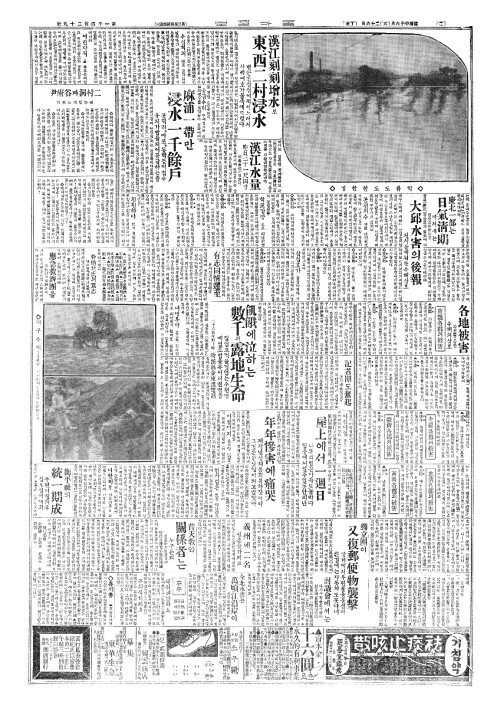 - 麻浦一帶(마포일대)만 浸水一千餘戶(침수일천여호)