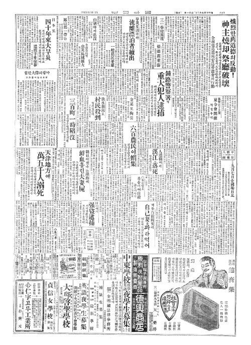- 天津地方(천진지방)에 萬五千人溺死(만오천인닉사)