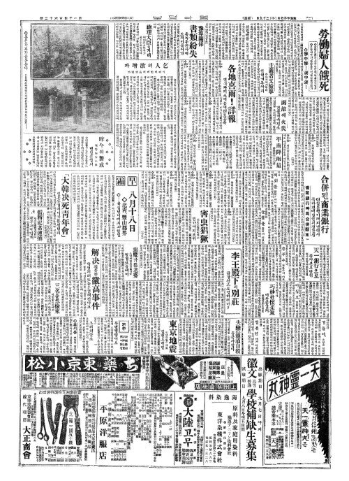 - 東京地震(동경지진) 작년구월이래로 일쳔오백번