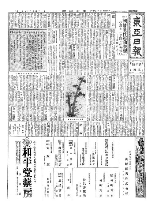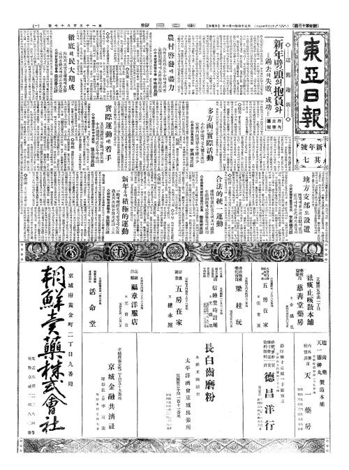- 今日本紙卅二靣(금일본지삽이면) 外附錄東亞乙丑曆(외부록동아을축역)