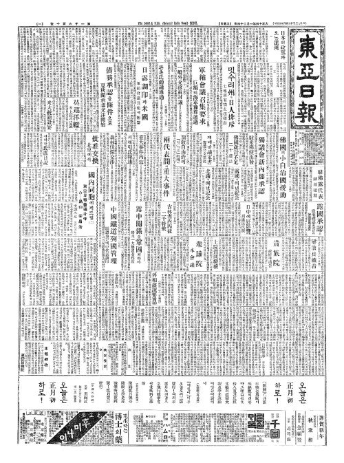 - 國內同胞(국내동포)에게드림 (二(이)) 東亞日報(동아일보)를通(통)하야
