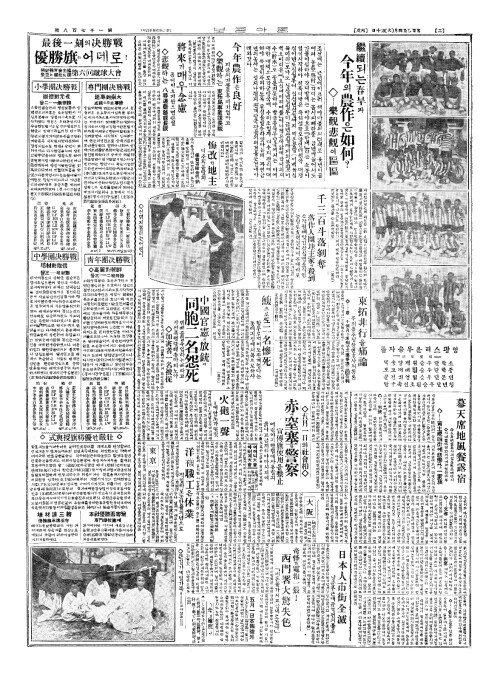 - 最後一刻(최후일각)의决勝戰(결승전) 優勝旗(우승기)는어데로! 朝鮮體育會(조선체육회) 主催東亞日報社後援(주최동아일보사후원) 第六回蹴球大會(제륙회축구대회)