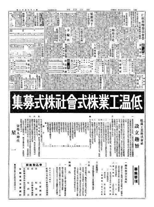 - 低溫工業會社(저온공업회사) 株式募集開始(주식모집개시)