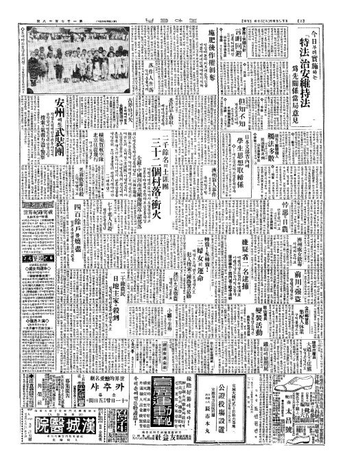 - 今日(금일)부터實施(실시)하는『特法(특법)』治安維持法(치안유지법)