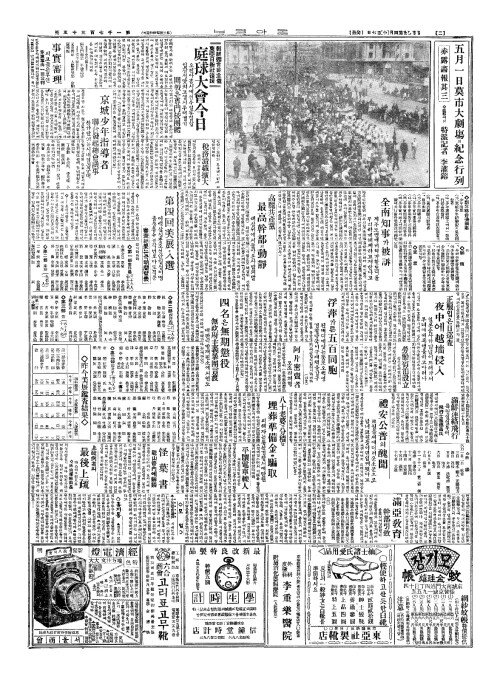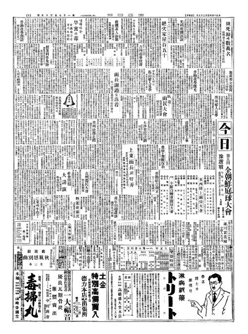 - 朝鮮體育會主催(조선체육회주최) 東亞日報社後援(동아일보사후원) 庭球大會今日(정구대회금일)